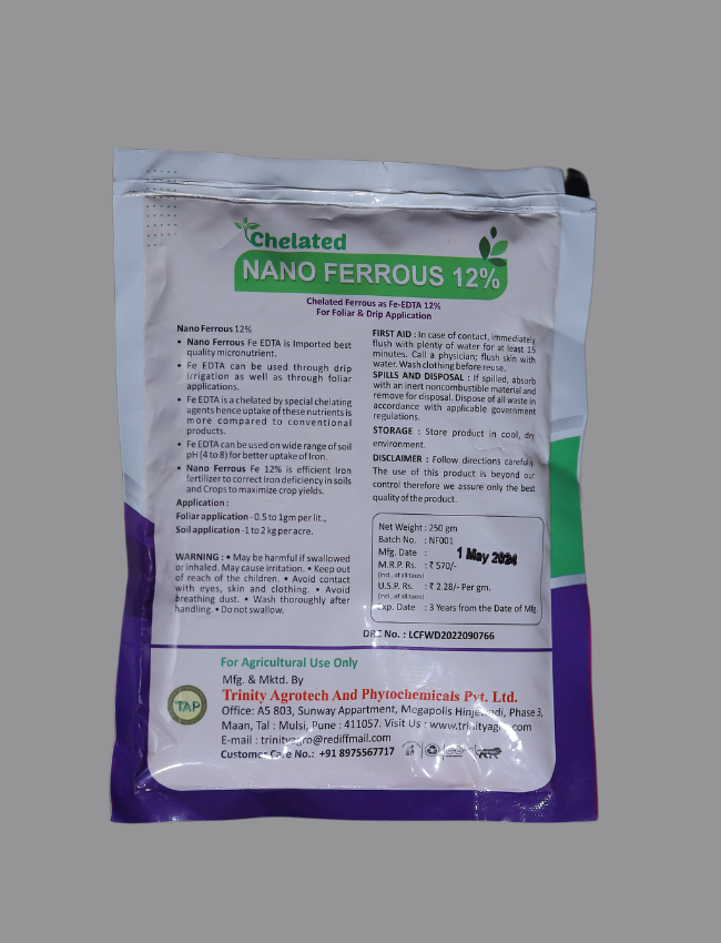 Nano ferrous 12% is efficient iron fertilizer to coreect irin deficiency in soils and crops to maximize crop yields