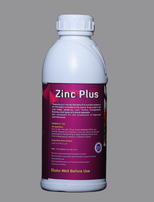 These eco-friendly bacteria are zinc-solubilizing bacteria in soil that are readily available to plants. It can be used for wheat, sorghum, maize, cotton, pomegranate, banana and all kinds of fruit and vegetable crops. Zinc is essential for vital production.